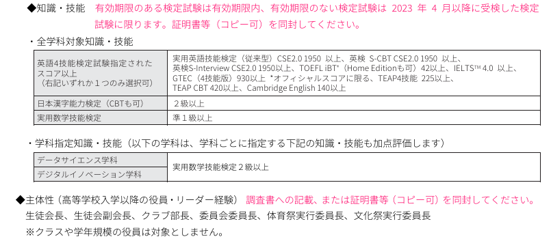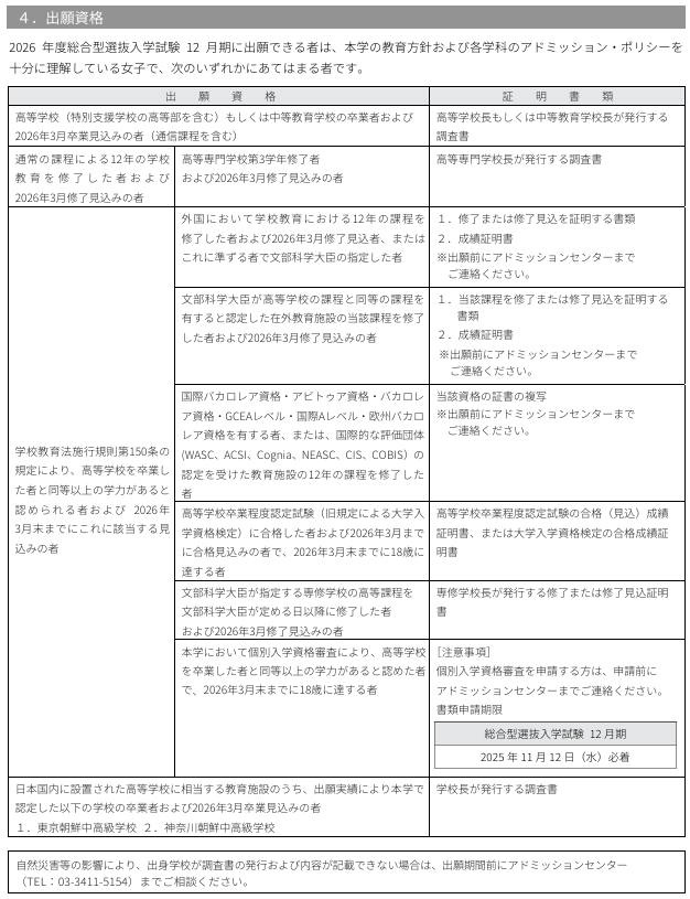 昭和女子大学総合情報学部の総合型選抜入試には、出願条件に制約があります。