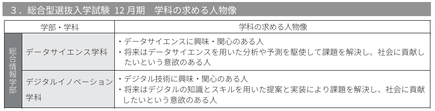 昭和女子大学総合情報学部の総合型選抜入試は、「総合型選抜入学試験」という名称で募集がなされています。
